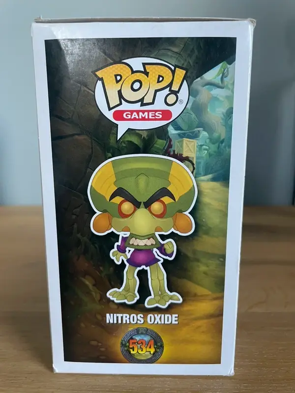 Nitros Oxide – Funko Pop! #534 (Crash Bandicoot) Maak kennis met de intergalactische racer waar je een haat-liefdeverhouding mee hebt: Nitros Oxide uit Crash Bandicoot! Deze opvallende Funko Pop! barst van de attitude met zijn groene huid, paarse outfit en boze blik – precies zoals je hem herinnert van die frustrerende eindraces in Crash Team Racing. Deze Pop! is een must-have voor echte Crash-fans en gamers met een vleugje nostalgie. Let op: de verpakking heeft op een paar plekken wat schade (zie foto’s), maar de figure zelf is in topconditie en klaar om jouw collectie een boosaardig randje te geven!