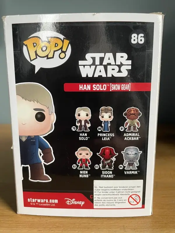 “Snelle trekker, grote mond en… een warme jas.” Deze Han Solo [Snow Gear] – Pop! Vinyl #86 is de enige smokkelaarslegende die er zelfs in een sneeuwstorm nog cool uitziet. Exclusief uitgebracht via Loot Crate, is hij gekleed in zijn winteroutfit – klaar om de ijskoude strijd aan te gaan op Starkiller Base. Met zijn blaster in de aanslag en die onmiskenbare Solo-charme, is dit figuur een must-have voor elke Star Wars-fan. Han shot first… ook in de sneeuw! #starwars #funkopop #hansolo