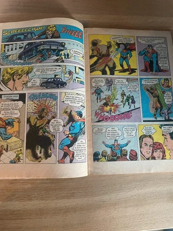 Vintage stripboek van Superman, getiteld 'Superman en het Zandmonster', uitgegeven door DC Comics. Een spannend avontuur waarin Superman het opneemt tegen een gevaarlijk zandmonster. Een leuke toevoeging aan elke stripboekcollectie!