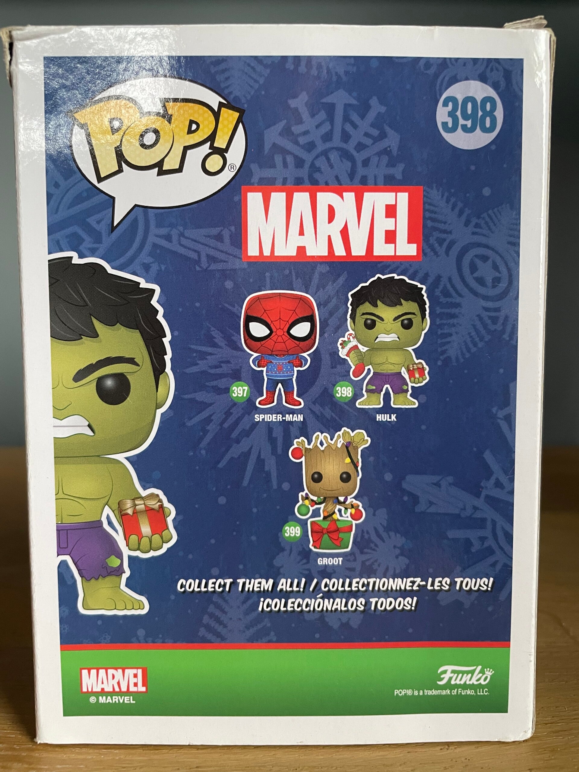 Leuke Funko Pop van Hulk in kerstthema, nummer 398 uit de Marvel serie. Ideaal voor verzamelaars of als kerstcadeau voor een Marvel fan!