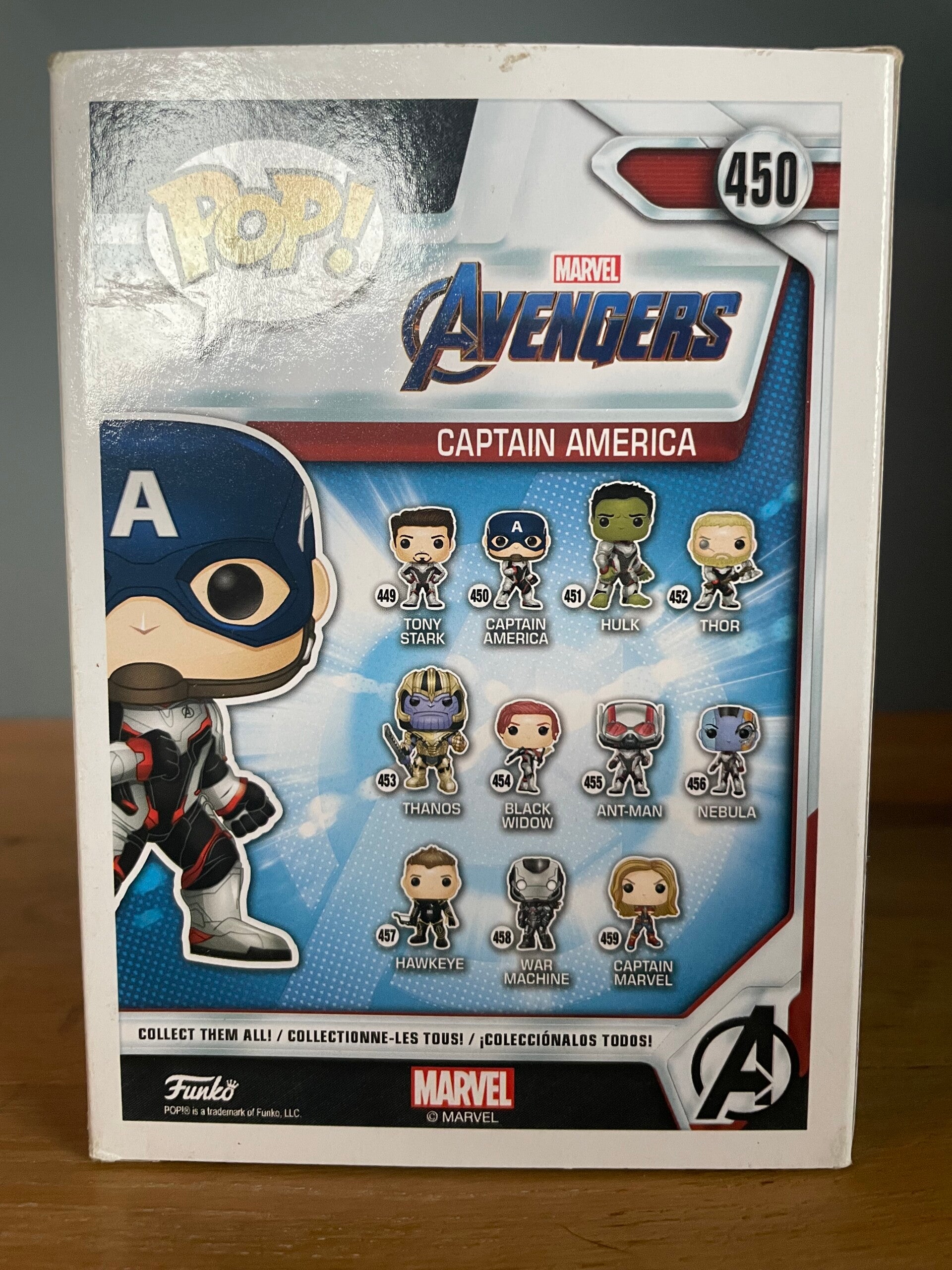 Verzamelfiguur van Captain America uit de Marvel Avengers Endgame serie. Funko Pop nummer 450. In originele doos. Perfect voor elke Marvel fan!