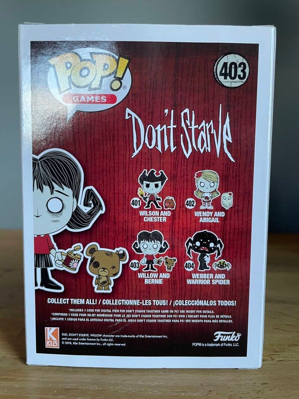 Koop een Funko Pop van Willow en Bernie uit de Don't Starve serie. Nummer 403. In uitstekende staat, nooit uit de doos geweest. Een must-have voor elke Don't Starve fan!
