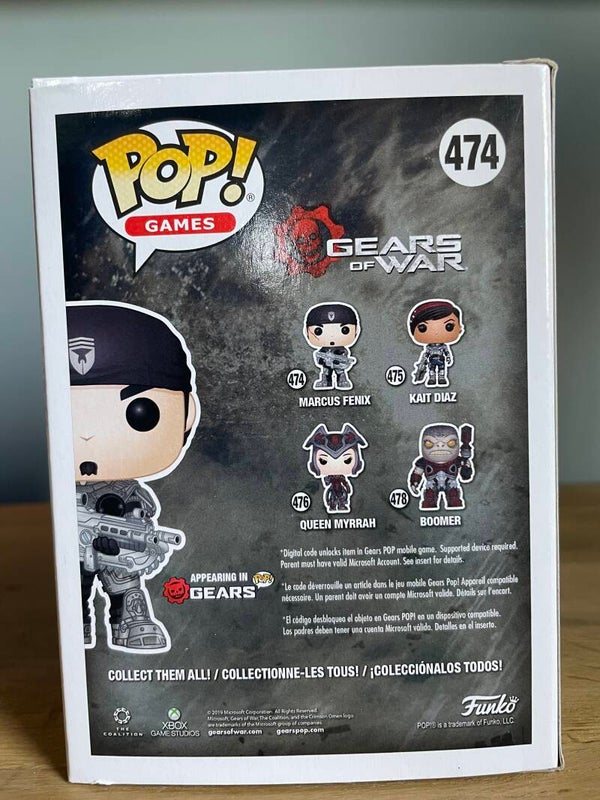 Koop een Funko Pop! van Marcus Fenix uit de Gears of War serie. Het is nummer 474 in de Pop! Games collectie. De pop is in uitstekende staat en wordt geleverd in de originele doos. Perfect voor verzamelaars en fans van Gears of War! De pop bevat zelfs een code voor in het spel!!
