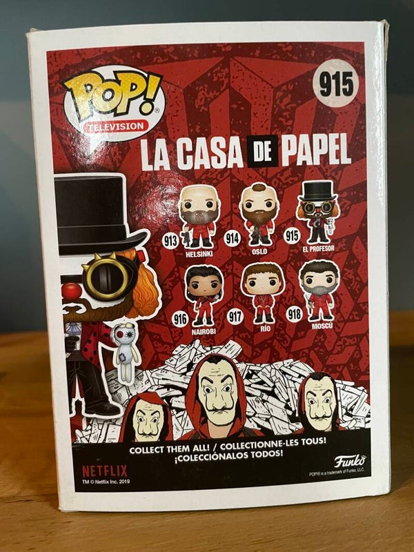 Koop een Funko Pop van El Profesor uit La Casa De Papel (Money Heist). Dit is nummer 915 in de Funko Pop Television serie. Een must-have voor fans van de serie en verzamelaars van Funko Pops! De pop is in uitstekende staat en wordt geleverd in de originele doos.