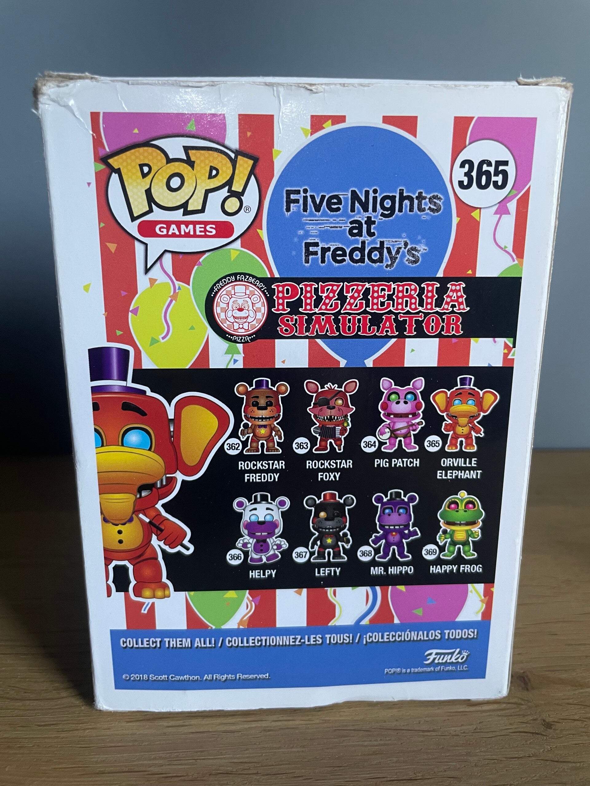 Te koop: Funko Pop van Orville Elephant uit de populaire game Five Nights at Freddy's Pizzeria Simulator. Dit is nummer 365 in de Funko Pop Games serie. De figuur is in uitstekende staat en de doos is ook nog oké, ideaal voor verzamelaars. Een must-have voor elke FNAF-fan!